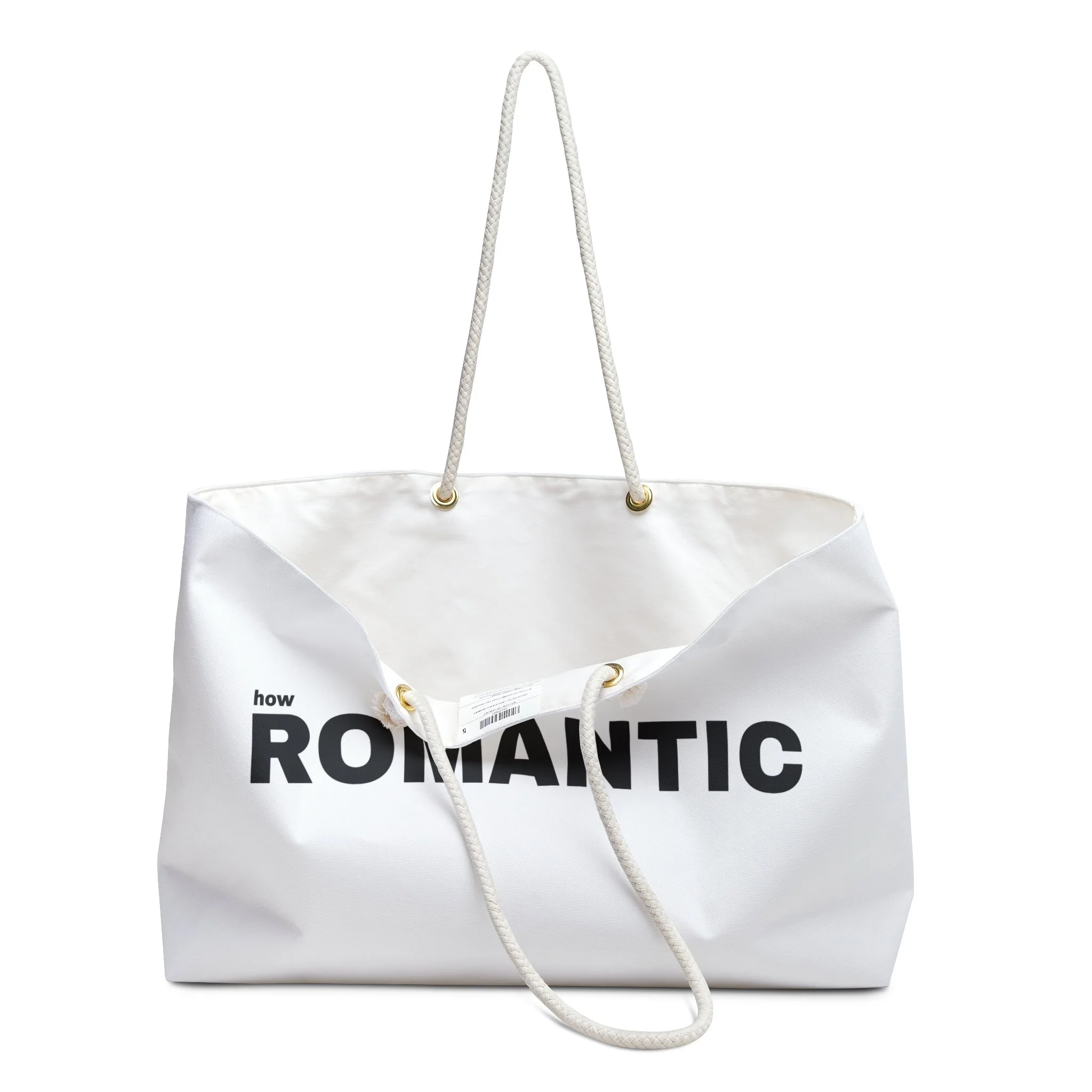 27" cream cotton rope handles threaded through gold-tone grommets